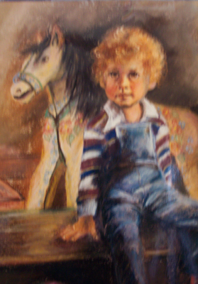 Little Boy & Rocking Horse 16x32 Pastel |